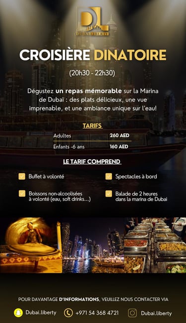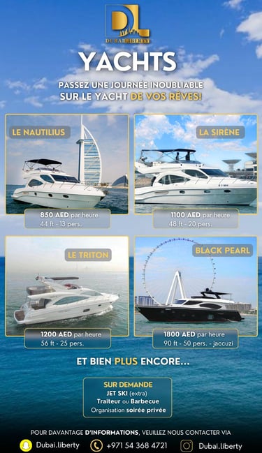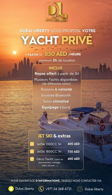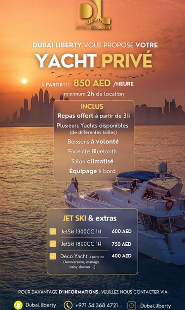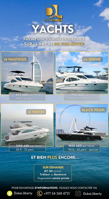 Découvrez des safaris, séminaires et croisières en yacht pour une expérience inoubliable à Dubaï.