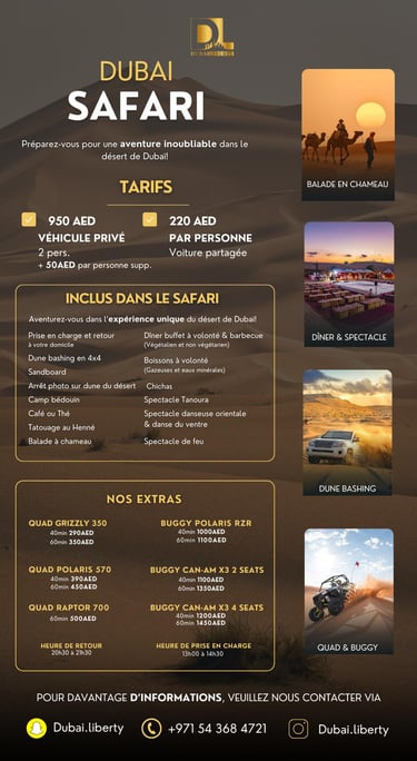 Les safaris étaient incroyables, un moment inoubliable à Dubaï. Merci Dubaï Liberty !