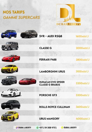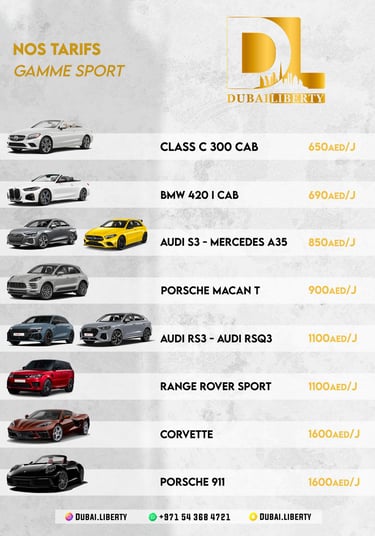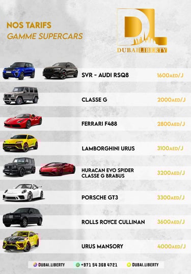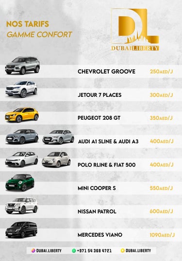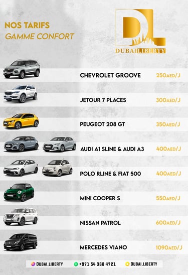 Que vous soyez en quête de confort, de luxe ou d’aventure, notre agence de voyages à Dubaï vous propose une large sélection de véhicules adaptés à vos besoins. De la voiture économique pour vos trajets quotidiens aux modèles de luxe pour une expérience premium, en passant par des SUV spacieux pour explorer les environs, nous avons la voiture qu’il vous faut. Réservez dès maintenant et profitez de la liberté de voyager à votre rythme dans l’une des villes les plus dynamiques du monde !